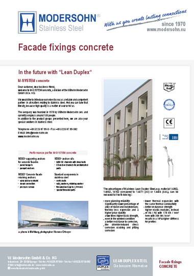 In 2002, Wilhelm Modersohn became aware of the SAF2304 (1.4362) material through Avesta in Sweden. In 2003 Modersohn introduced the first Lean Duplex steel for system products in the German market for fastening systems.