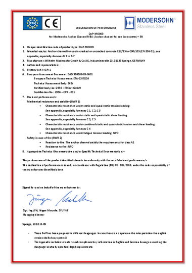 In 2002, Wilhelm Modersohn became aware of the SAF2304 (1.4362) material through Avesta in Sweden. In 2003 Modersohn introduced the first Lean Duplex steel for system products in the German market for fastening systems.