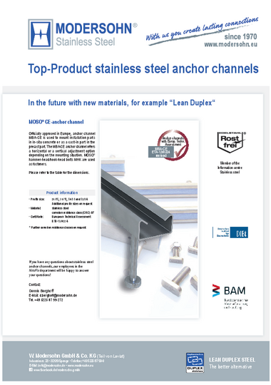 In 2002, Wilhelm Modersohn became aware of the SAF2304 (1.4362) material through Avesta in Sweden. In 2003 Modersohn introduced the first Lean Duplex steel for system products in the German market for fastening systems.